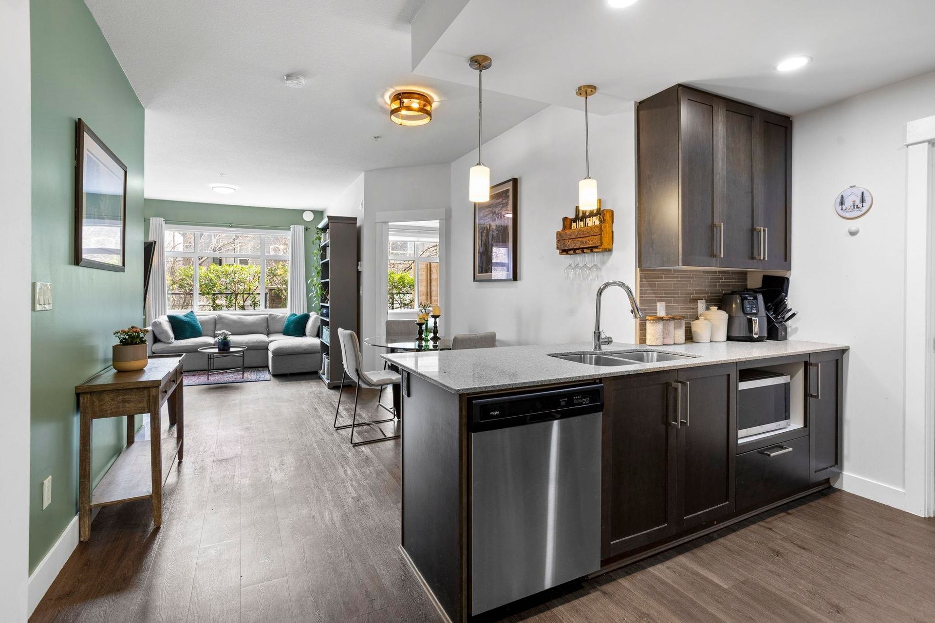 Welcome to the Orchid Riverside by Quantum Properties. 2 bedroom and 2 bathroom suite with oversized outdoor space perfect for entertaining. Centrally located in the heart of Port Coquitlam surrounded by parks and recreation, walking trails, river, green space, West Coast Express, highway access and Gates Park! Floor plan features open concept living with quartz countertops, stainless steel appliances, freshly painted, premiere laminate flooring, & high quality finishings. Both bedrooms and bathrooms on opposite sides for added privacy. Amenities include guest suite, sauna room, library, exercise room, and movie room! Includes parking stall with attached, private, heated storage. Rentals & pets allowed.