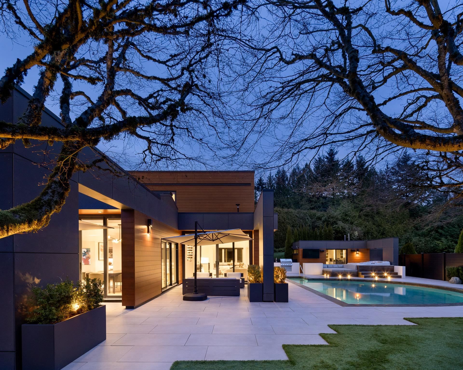 The Arc at Rockridge - A rare modernist residence originally designed by Arthur Erickson’s firm & masterfully reimagined. Privately set behind smooth-formed concrete walls & custom automated gate on a flat corner lot. Refined interiors ft. Venetian plaster walls, skylight corridors & dramatic 20-ft marble fireplace. Reimagined chef’s kitchen w/ Caesarstone counters, integrated appliances & custom millwork opens to sun-soaked terraces; seamless indoor-outdoor living. Up offers 3 ensuited bdrms incl. a private primary w/ ocean views, Poliform cosets & spa-like bath+ flex space w/ potential for a 4th bdrm. Below incl. theatre, bar, gym & guest room. Outdoors the home transforms into a private resort w/ sculptural pool, hot tub, outdoor kitchen, cabana w/ marble interior, steam room & shower.