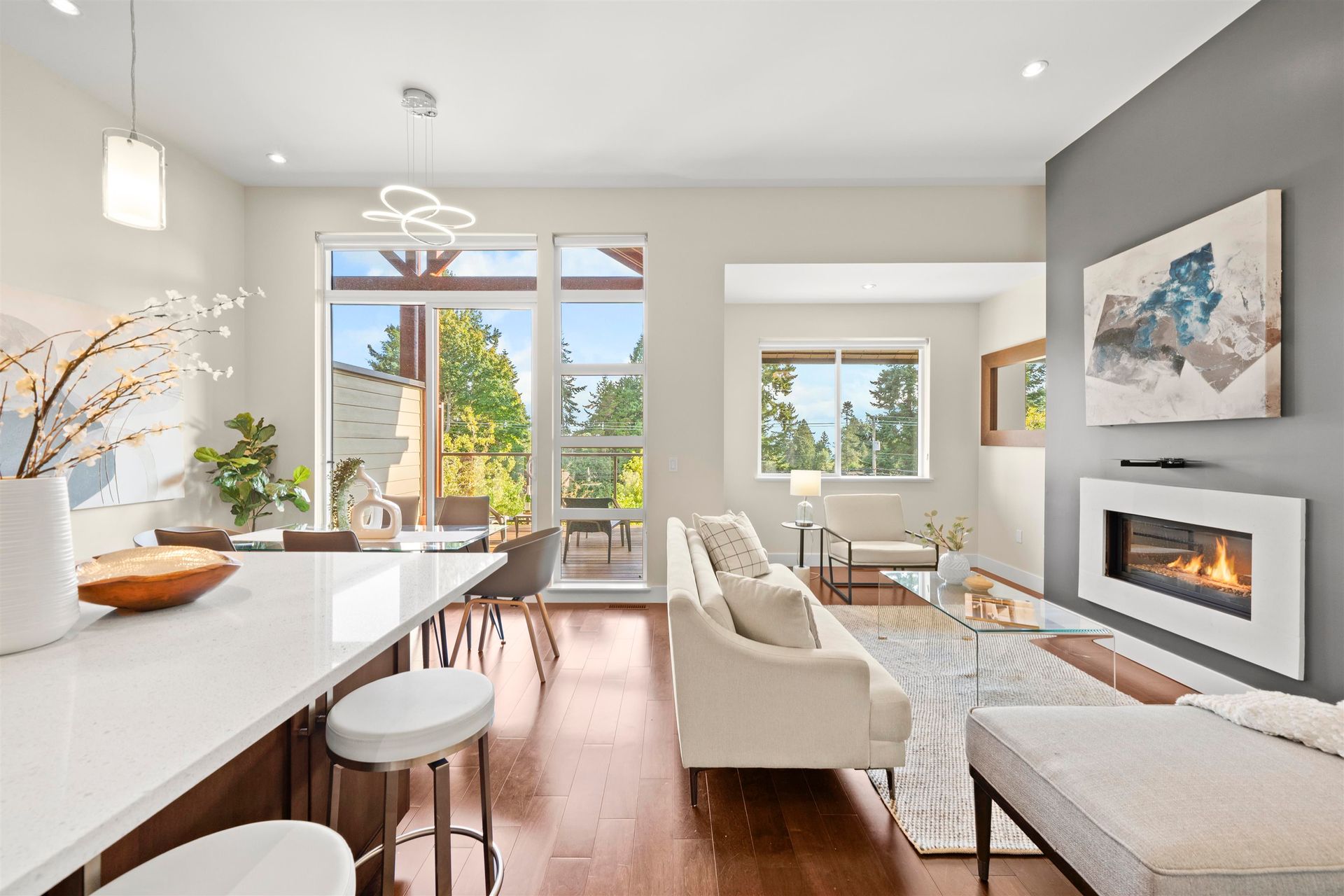 Luxury Executive Townhome at Bayview Terrace with Ocean Views, Private Elevator & More! This stunning 2,031 square foot townhouse offers luxury living in a prime location. Situated in a Private, Gated Community, near beaches, schools, and shopping, it features 3 bedrooms, 3 bathrooms. With a Private Elevator, double car garage, and 3 balconies, peak views of the ocean. The chef’s kitchen is equipped with Designer Appliances and opens to a south-facing deck with a BBQ outlet. The primary bedroom boasts a gas fireplace, walk-in closet, and a private deck, while the luxurious 5-piece ensuite includes in-floor heating. Additional highlights include a secondary bedroom with a private balcony, ample storage, 2 fireplaces, AC, walk-in pantry and soaring 11-Foot Ceilings on the top floor.