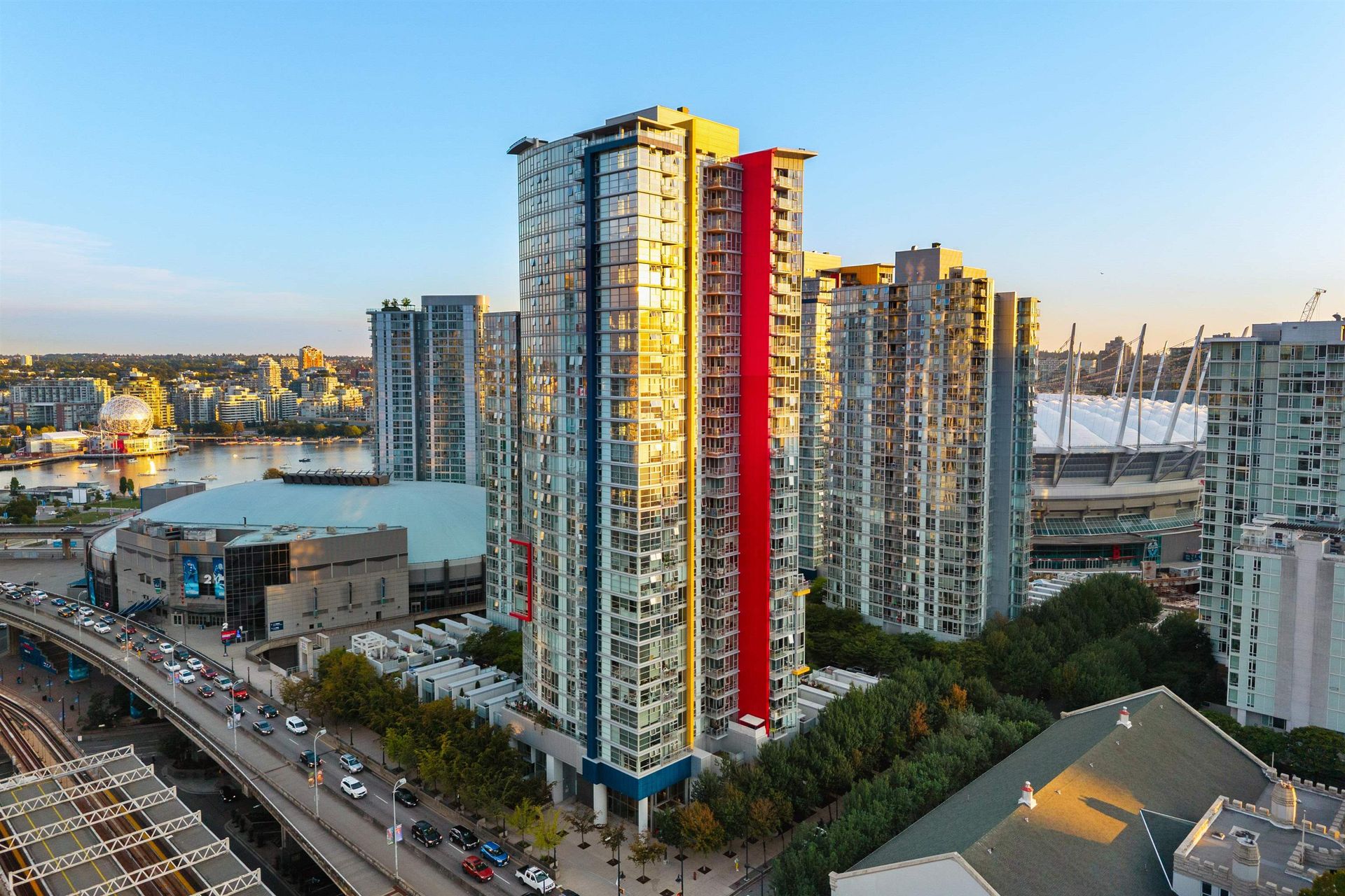 Live at Spectrum 4 – experience vibrant city living in this bright 1 Bed + Den, featuring panoramic views of the north shore mountains + city skyline. Sleek, turnkey interior is ready to move in w/ open layout. This residence combines modern glass-and-concrete architecture w/ a rich urban legacy. Designed to deliver high-quality city living, Spectrum 4 offers a full suite of amenities including a full-length lap pool, two fitness centres (Club Ozone), sauna, steam room, concierge service, garden lobby + expansive lounge for entertaining. Unbeatable location: steps to SkyTrain, Rogers Arena, BC Place, Costco, T&T, downtown fine dining + shopping - everything is within reach. Opportunity own in one of the city's most central addresses that blends style, convenience and value in one.