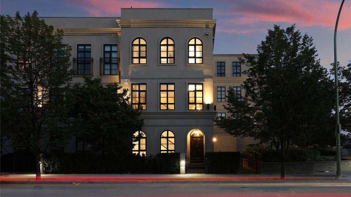 Welcome to Kensington Terrace, a spectacular brownstone townhome in downtown Kelowna. This thoughtful and practical layout offers many usable spaces, all within Kelowna’s growing cultural district with every amenity a short walk from your door. Entry on the ground floor level grants access to great flex room, perfect for home office or secondary living space, plus powder room. This level also grants access to your fenced front yard, one of only two units with dedicated green space. On the main level is the gourmet kitchen, complete with stainless steel appliances, gas range, and temperature controlled wine cellar, with built in cabinetry and a large covered patio with gas hookup. The living and dining rooms offer tons of natural light, and a gas fireplace adds warmth to an already welcoming space. Upstairs are two bedrooms, including the primary retreat with two separate walk-in closets, and an ensuite with dual vanities and glass & tile shower. A second bedroom, full bathroom, and generous laundry room finish this level. On the top level is an incredible rec room featuring built in cabinetry, ideally suited to a theatre room, games room, gym, etc. Outside is the rooftop patio with pergola and awning to provide shade in the summer heat, plus wet bar, and engineered for a hot tub. Immaculate condition throughout, this home offers so much flexibility, all wrapped in a gorgeous architectural package. Two parking stalls including single garage. Elevator roughed in. Pets welcome!