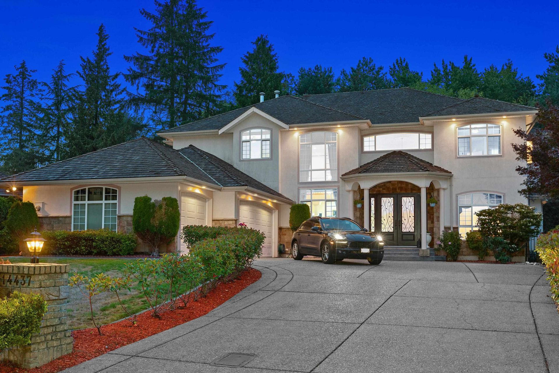British Manor's 5500+ sqft trophy estate property on 1/3 acre! This custom-built residence is being offered on the market for the first time. The property is nestled on a quiet greenbelt offering a park-like setting, a luscious manicured garden & extended driveway. This home has been very well maintained by the original owners, maintaining its architectural integrity while seamlessly blending modern luxury & old world charm. The dramatic two-story foyer & principal room impress upon entry. Upper level primary suite features french doors, a Juliet balcony, 2 walk in closets, & a 5 piece spa ensuite. 3 add'l bedrm suites & linen room are situated nearby. Theatre w/ auto screen, office, gym, kitchen on lower level, a 3 bay garage.