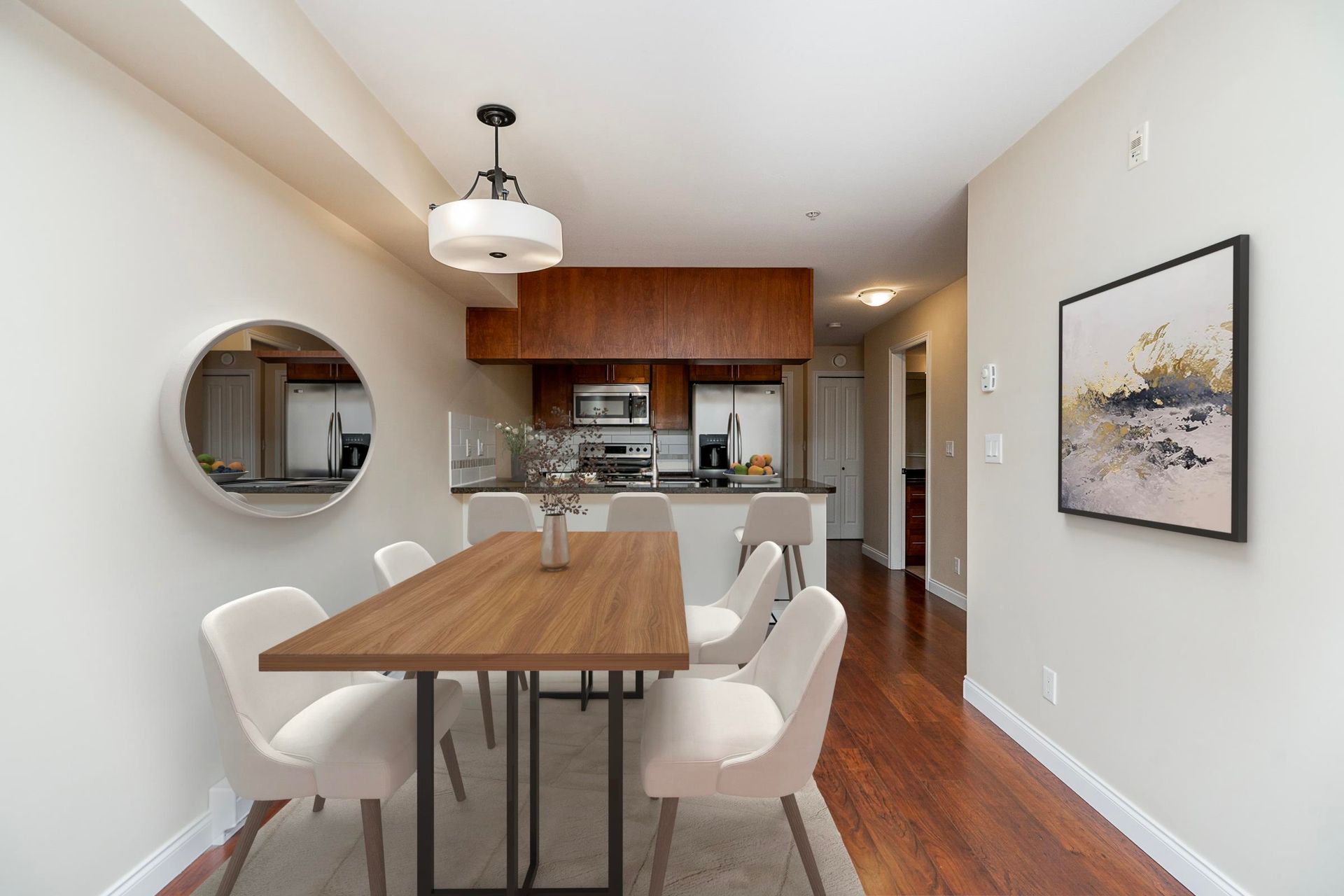 Paddington Station! Spacious 2-bedroom condo in the BEST spot in the complex. Enjoy a generous sized primary with built-in A/C and private deck access, plus a gourmet kitchen with granite counters, shaker cabinets, stainless steel appliances, and a large island with breakfast bar. Open-concept living with rich laminate floors is perfect for entertaining, with the versatile second bedroom. South-facing on the quiet side for tons of natural light, with a large sundeck and electric fireplace included. Pet-friendly, just steps to shopping, transit, and more—ideal for first-time buyers or downsizers!