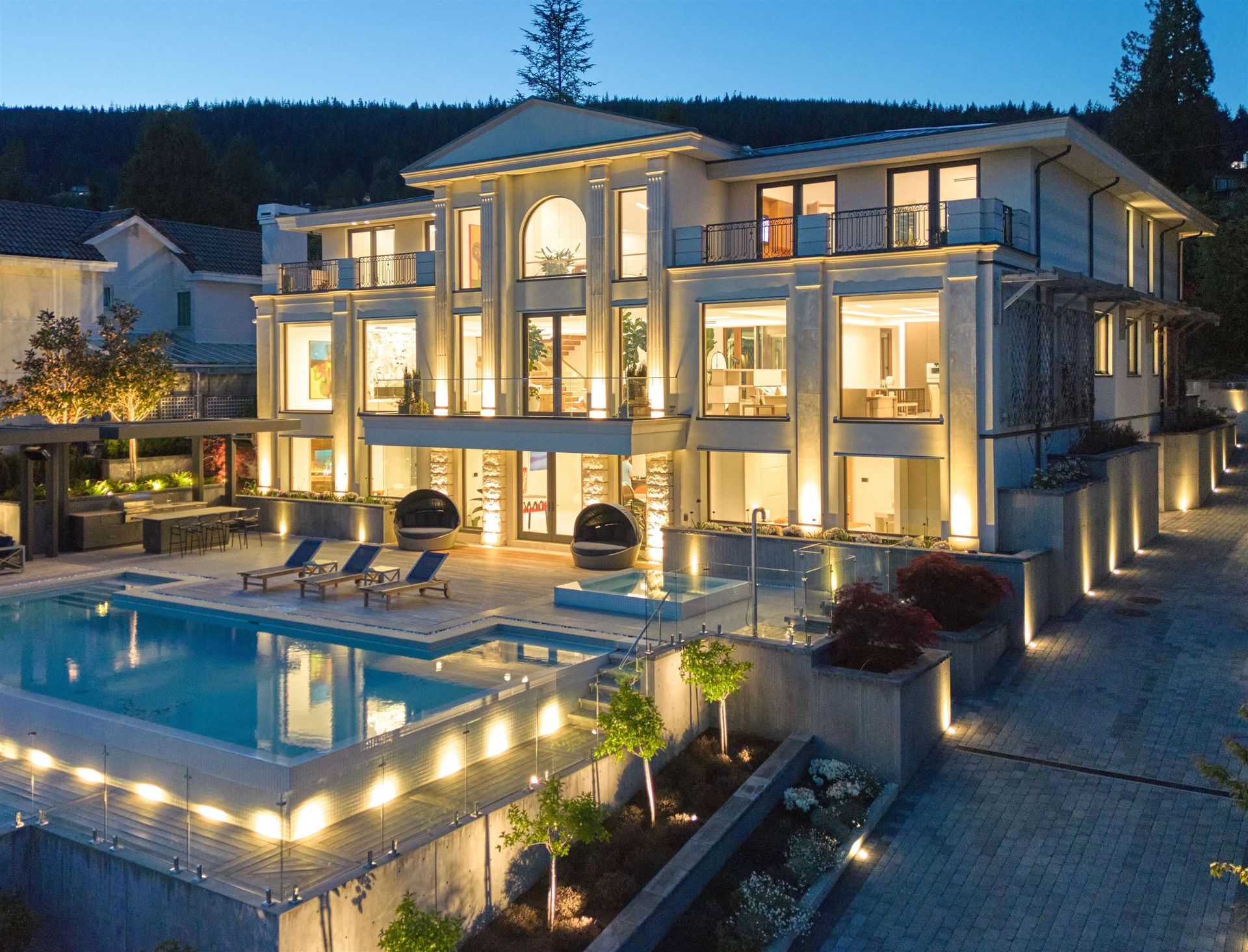 The King Georges Estate is a European inspired World Class luxury residence situated on a .68 acre property in West Vancouver’s most exclusive British Properties enclave providing spectacular views of the ocean, Stanley Park and downtown skyline. Experience 11,279 sf of luxurious living space providing a sophisticated lifestyle that combines timeless Italian sophistication and modern elements that blend seamlessly to create an international masterpiece. Features include Italian marble floors throughout, a sensational kitchen with all top grade appliances, private elevator to all 3 levels, Control 4 automation, state of the art home theatre, resort style fitness center, entertainment lounge with wet bar, temperature controlled wine room and 8 car garage with heated driveway.