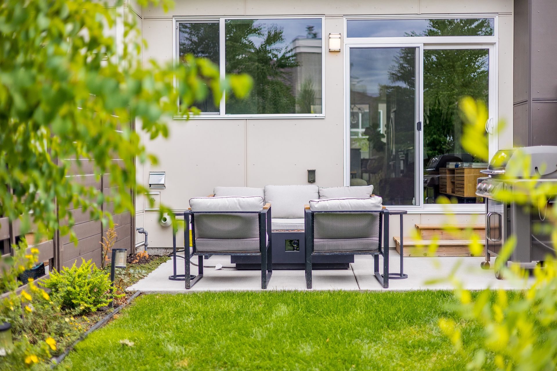 Discover the value of #4 at Trellis, a home that combines a smart floor plan, a prime location, and exceptional features. You’ll appreciate the walk-out main living area that opens directly to a private backyard, perfect for outdoor relaxation and gatherings. The fully fenced yard, with morning sun and afternoon shade, is ideal for your furry friends. Perennial plants return each spring, ensuring effortless beauty and low maintenance. A gas hook-up invites you to BBQ and elevates your entertaining vibe for family and friends. Additionally, a deck off the dining area offers a cozy spot to enjoy fresh breezes as they flow through the main living space. Inside, the home features durable and stylish luxury vinyl plank flooring throughout. The open-concept great room includes a modern kitchen with quartz countertops and stainless steel appliances, combining quality with practicality. Upstairs, you'll find a spacious primary suite and two generously sized bedrooms - one currently staged as an office, making it perfect for working from home or accommodating guests. Located just north of downtown Kelowna, Glenmore provides easy access to the city’s amenities, shopping, dining, parks, and recreational facilities, offering a perfect balance of urban convenience and outdoor activity. Surrounded by mountains and green spaces, the area encourages an active lifestyle with nearby trails, parks, and golf courses. Only 15 minutes from YLW and UBCO, it is an excellent opportunity to become part of a vibrant community in a highly desirable location.