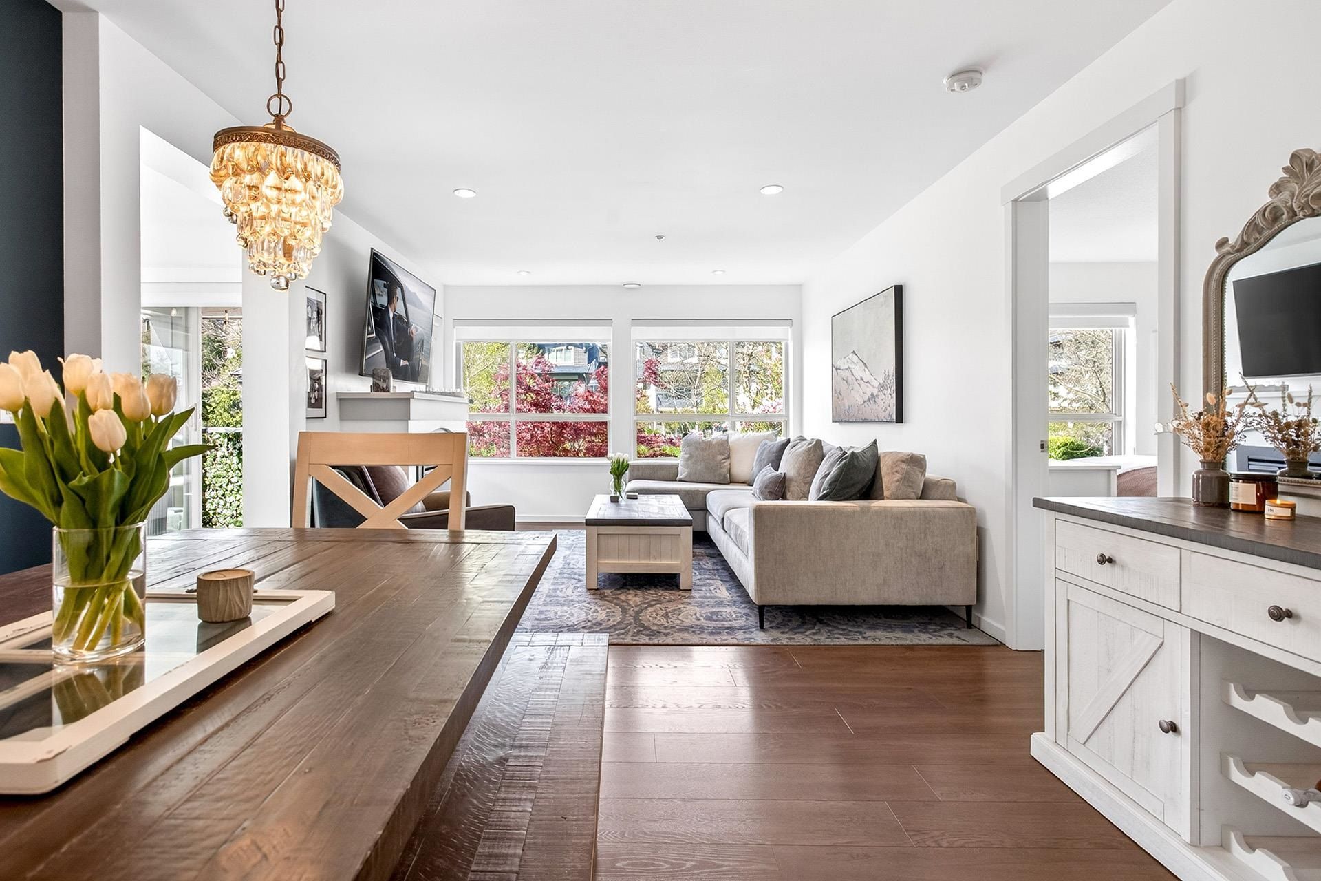 Welcome to Ledgeview at Dayanee Springs in prestigious Westwood Plateau. This updated 2 bed, 2 bath corner unit offers 1,100 sq ft of well-designed living on the quiet northwest side. Bright and airy with oversized windows, it features Pottery Barn chandeliers, smooth ceilings, pot lighting, and a cozy electric fireplace with new insert. The renovated kitchen includes taupe cabinetry, a new gas range and hood fan, plus a versatile nook for a home office or dining. Enjoy a private balcony with mountain and sunset views. The spacious primary bedroom offers a walk-in closet and an updated ensuite with a soaker tub. Resort-style amenities and a prime location near SkyTrain, Lafarge Lake, Coquitlam Centre, and trails complete the package.
